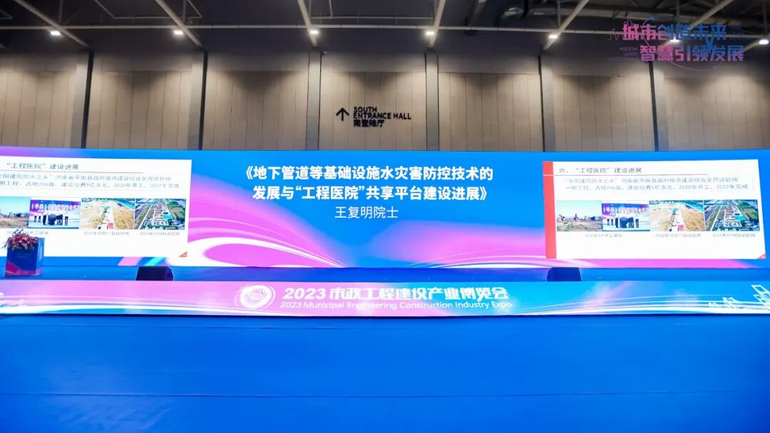 王复明院士发表《地下管道等基础设施水灾害防控技术发展与“工程医院”共享平台建设进展》演讲,他强调了地下管网建设